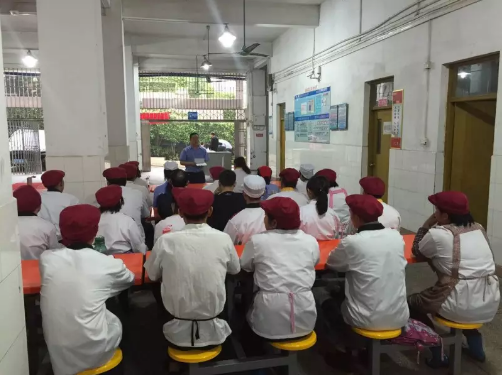 據上海公用事業高級技工學校”張主管陳述,經營管理這家食堂,他幾乎每天都必須要做一件事情:召開團隊會議。結合食堂就餐時間,張主管會安排每周啟動會,早會和午會。在周啟動會上,張主管會明確本周工作目標方向,強化各崗位職責,安排各管理小組工作細則,并結合7S管理運行機制,給予員工在“整理、整頓、清掃、清潔、素養、安全和速度/節約”的培訓、實施、監督、總結、完善。細化到每天早晨食堂蔬菜采購回來,食堂人員的分工、檢驗、廚房操作、粗(初)加工、清洗、切配、過水、加工、裝框、運輸等各細節管理操作標準。午會上,陳主管會結合早上飯堂經營實際情況,召開飯堂經營工作總結會議,隨機安排員工分享,并給予建設性的指導意見同時布置下午的工作。