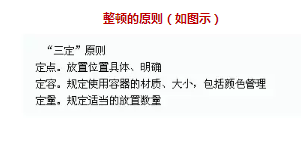 整理的目的是:增加作業面積;物流暢通、防止誤用等。