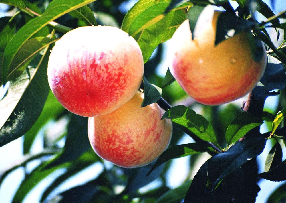 成熟的水蜜桃略呈球形,表面裹著一層細(xì)小的絨毛,青里泛白,白里透紅。一個(gè)桃子一般重一百克到二百克,大的重三百多克。水蜜桃皮很薄,果肉豐富,宜于生食,入口滑潤(rùn)不留渣子。剛熟的桃子硬而甜,熟透的桃子軟而多汁,吃時(shí)宜輕輕拿起,小心地把皮撕下去;這樣的果品,對(duì)于老年人和牙齒不好的人來說,是難得的夏令珍品.吃剩下的核就是水蜜桃的種子,外殼呈長(zhǎng)扁形,兩端稍尖,表面疙疙瘩瘩的,比較硬。核由兩片合成,敲開便可看到桃仁。桃仁可以吃,也可以入藥。
